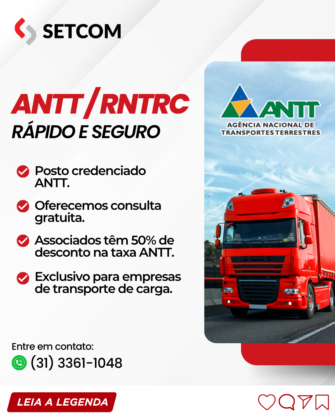 🔹 Associados SETCOM têm 50% de desconto na taxa ANTT.