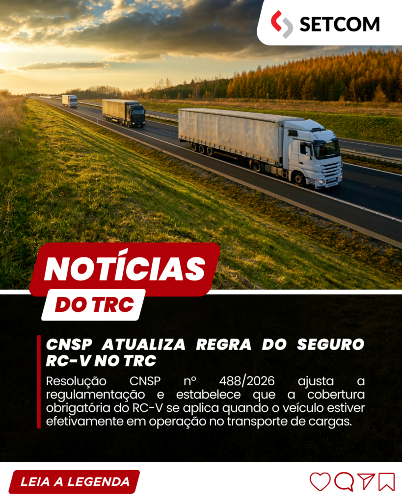 A atuação institucional da NTC&Logística contribuiu para uma atualização relevante na regulamentação do Seguro de Responsabilidade Civil de Veículo (RC-V) no Transporte Rodoviário de Cargas (TRC). O Conselho Nacional de Seguros Privados (CNSP) publicou, em 10 de março de 2026, a Resolução nº 488, que altera dispositivos da Resolução CNSP nº 478/2024, promovendo ajustes na redação e no alcance da cobertura obrigatória.