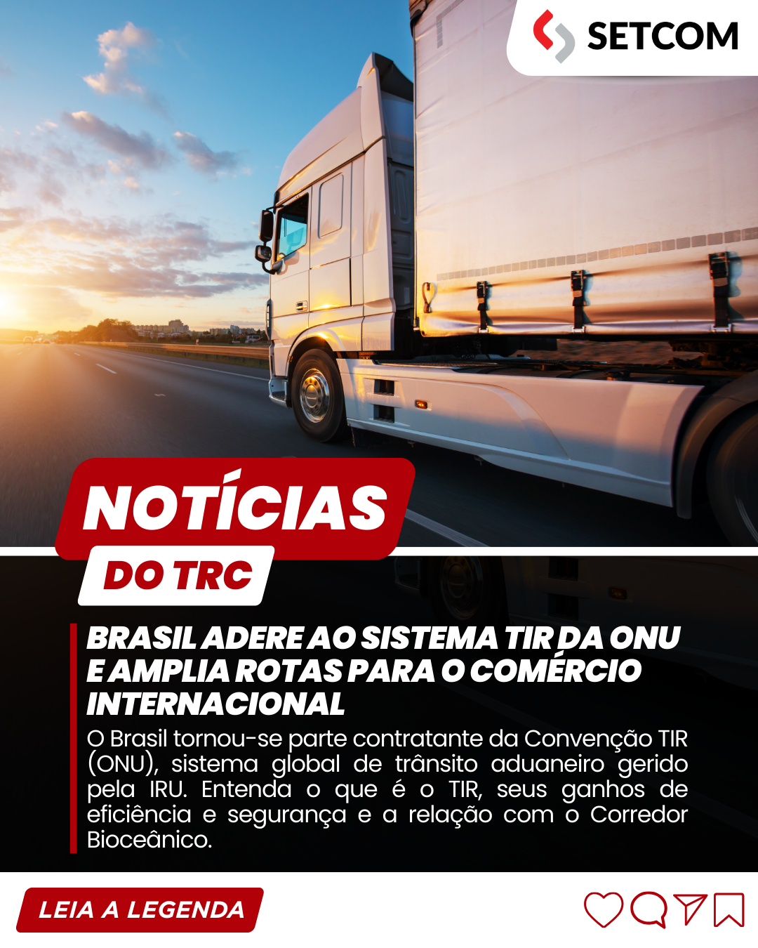 O Brasil aderiu ao TIR, reconhecido como o único sistema global de trânsito apoiado pela ONU, tornando-se a 79ª parte contratante da Convenção TIR das Nações Unidas. A medida é apontada como um avanço para tornar o comércio mais eficiente e seguro na América do Sul e em operações internacionais.