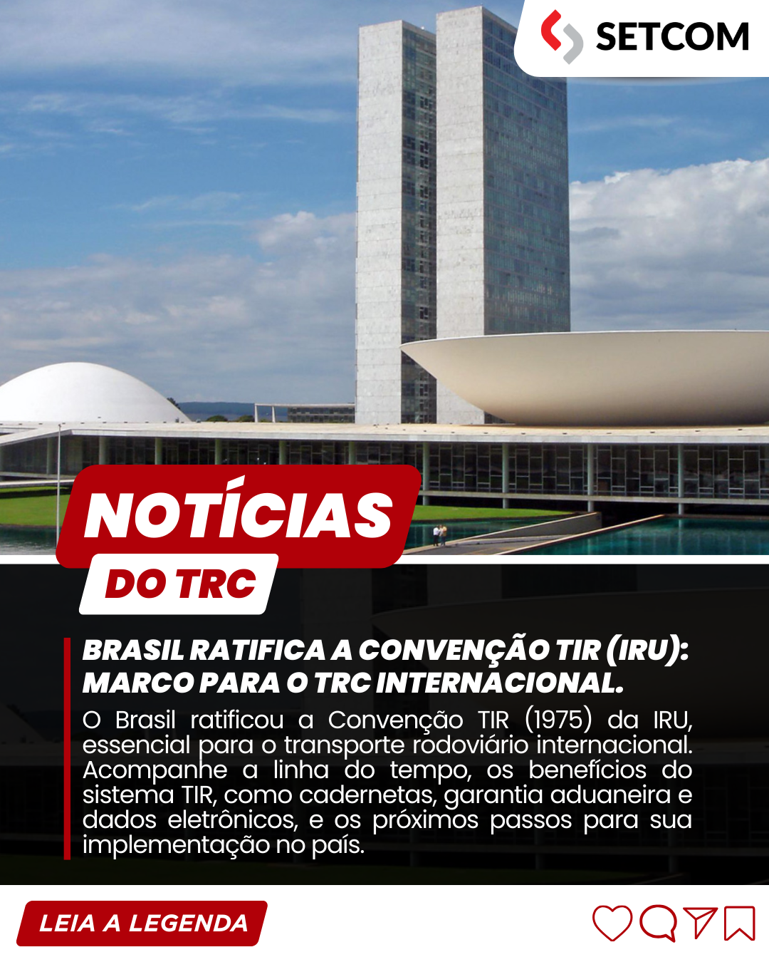 O Brasil deu um passo decisivo para fortalecer sua integração às principais rotas do comércio internacional com a ratificação da Convenção Aduaneira sobre o Transporte Internacional de Mercadorias ao Abrigo das Cadernetas TIR (Convenção TIR de 1975), administrada pela IRU – União Internacional de Transportes Rodoviários.