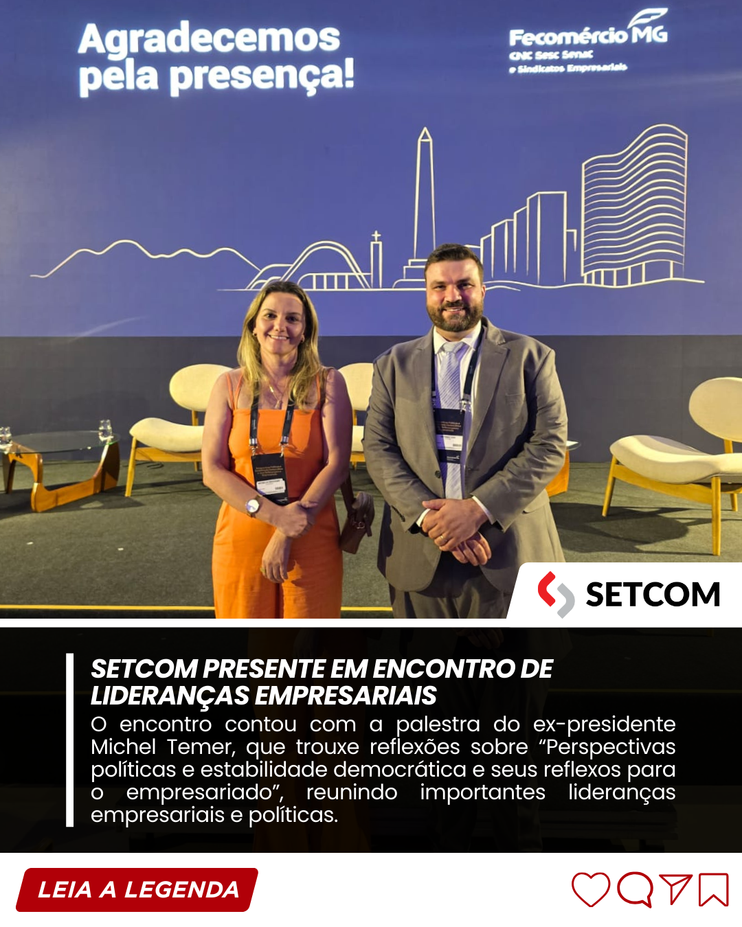 Nesta sexta-feira, 19/09, o SETCOM, representado por nossa diretora Michelle Fernandes, marcou presença no evento promovido pelo Sistema Fecomércio Minas, realizado no histórico Cine Theatro Brasil. O encontro reuniu...