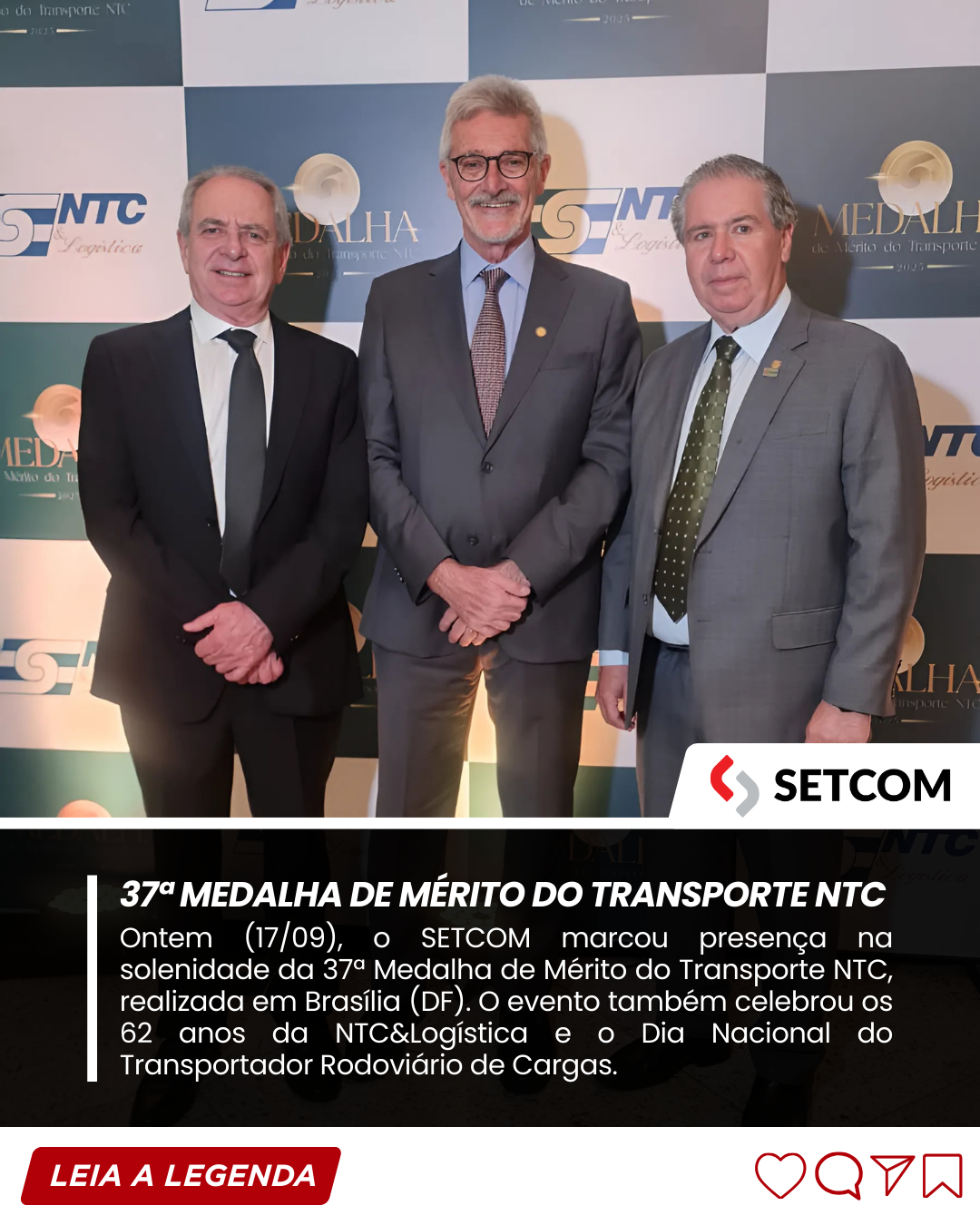 Ontem (17/09), o SETCOM marcou presença na solenidade da 37ª Medalha de Mérito do Transporte NTC, realizada em Brasília (DF). O evento também celebrou os 62 anos da NTC&Logística...