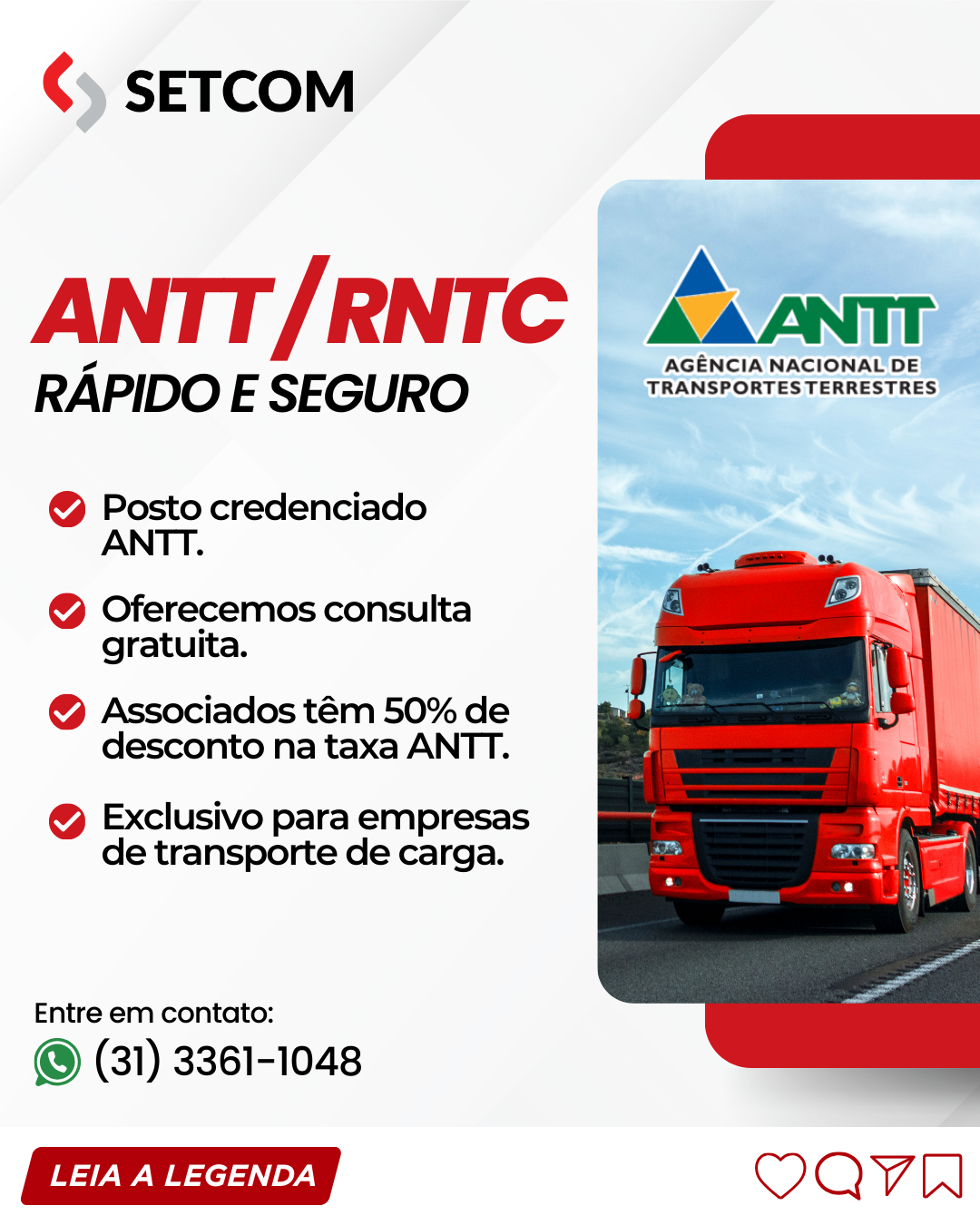 O SETCOM é posto credenciado pela ANTT e está à disposição para auxiliar sua empresa no RNTRC e demais serviços relacionados ao transporte rodoviário de cargas. 🔹 Consulta gratuita...