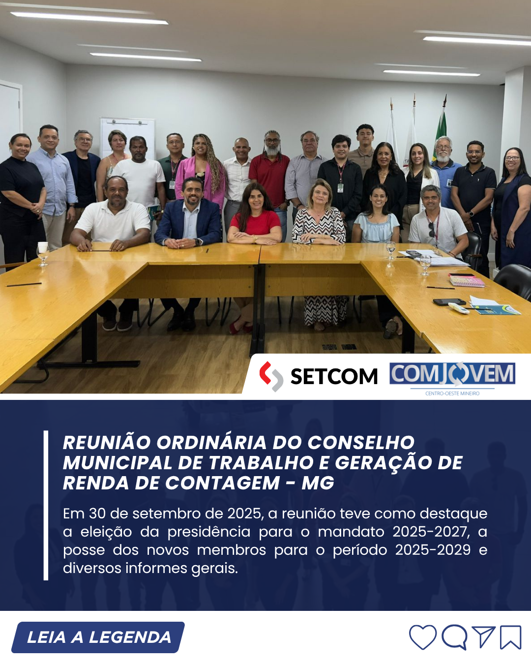 Reunião Ordinária — Conselho Municipal de Trabalho e Geração de Renda (Contagem/MG) Em 30/09/2025, na sede da CIEMG, aconteceu a Reunião Ordinária do Conselho Municipal de Trabalho e Geração...