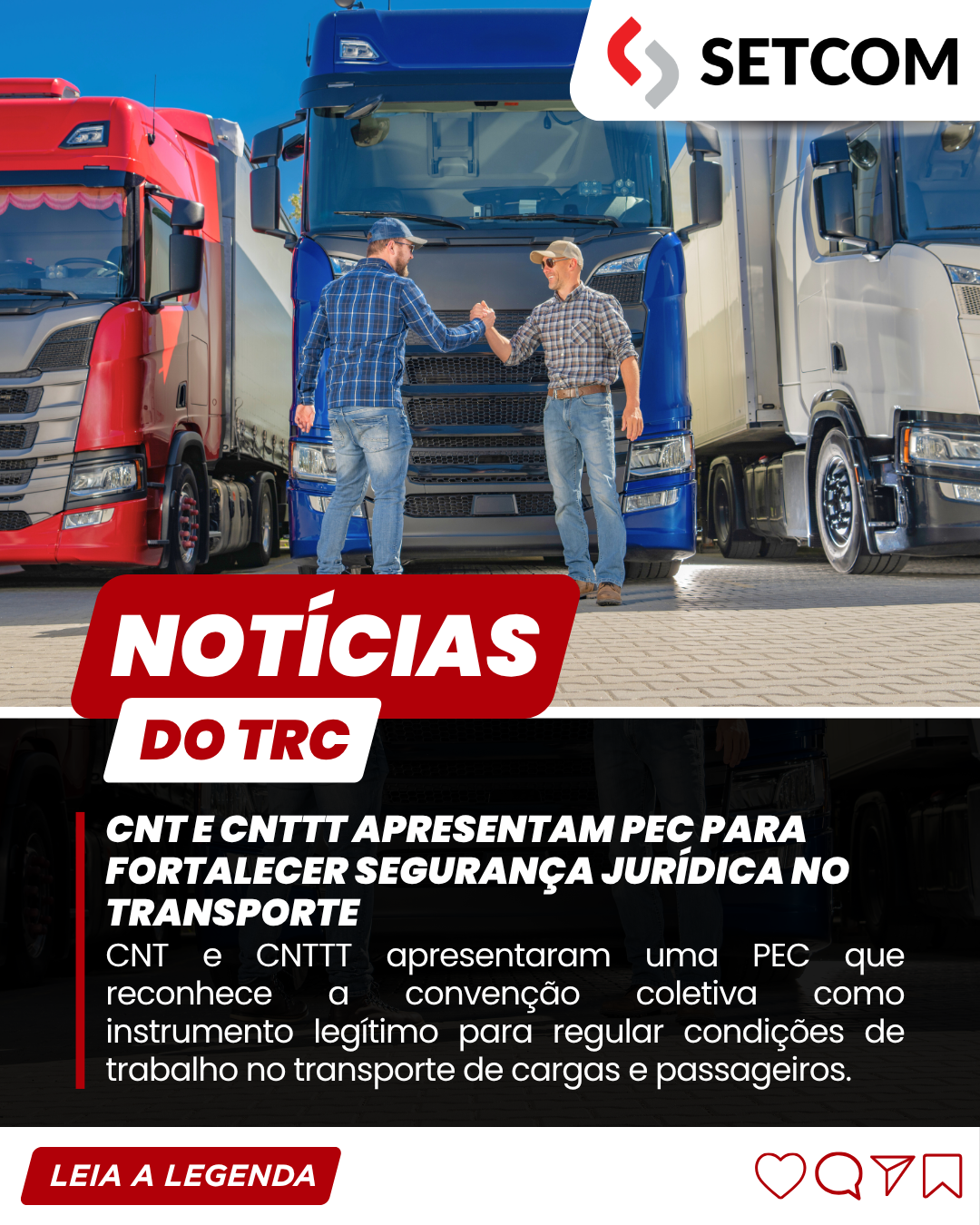 💬 O SETCOM acompanha iniciativas que fortaleçam a segurança jurídica e as relações trabalhistas no transporte.