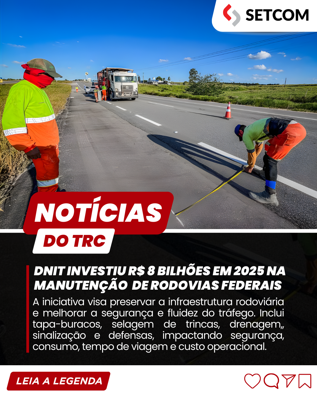 Segundo a autarquia, os resultados podem ser observados no ICM (Índice de Condição da Manutenção), ferramenta de avaliação mensal do estado de conservação das rodovias. No diagnóstico de novembro de 2025, o DNIT apontou que 69% dos 57 mil quilômetros avaliados estavam em boas condições, enquanto 20% foram classificados como regulares, categoria que, pela metodologia do índice, ainda representa trechos considerados seguros e adequados para o tráfego.