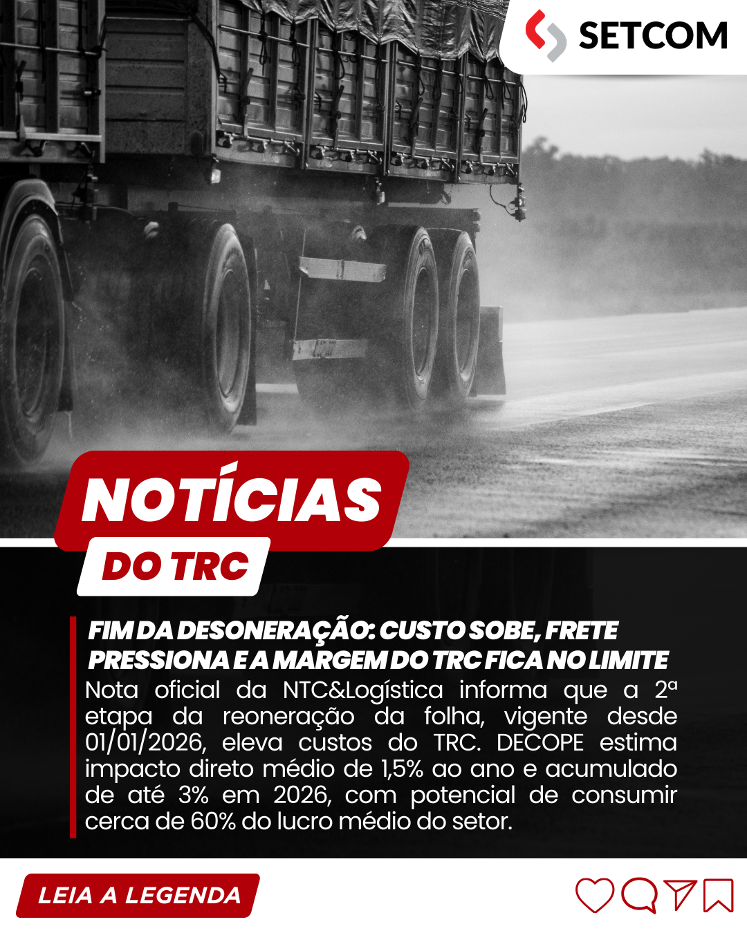 O SETCOM seguirá acompanhando os desdobramentos da reoneração e orientando o setor com leitura técnica de impacto, apoio institucional e recomendações práticas para precificação e negociação de frete em 2026.