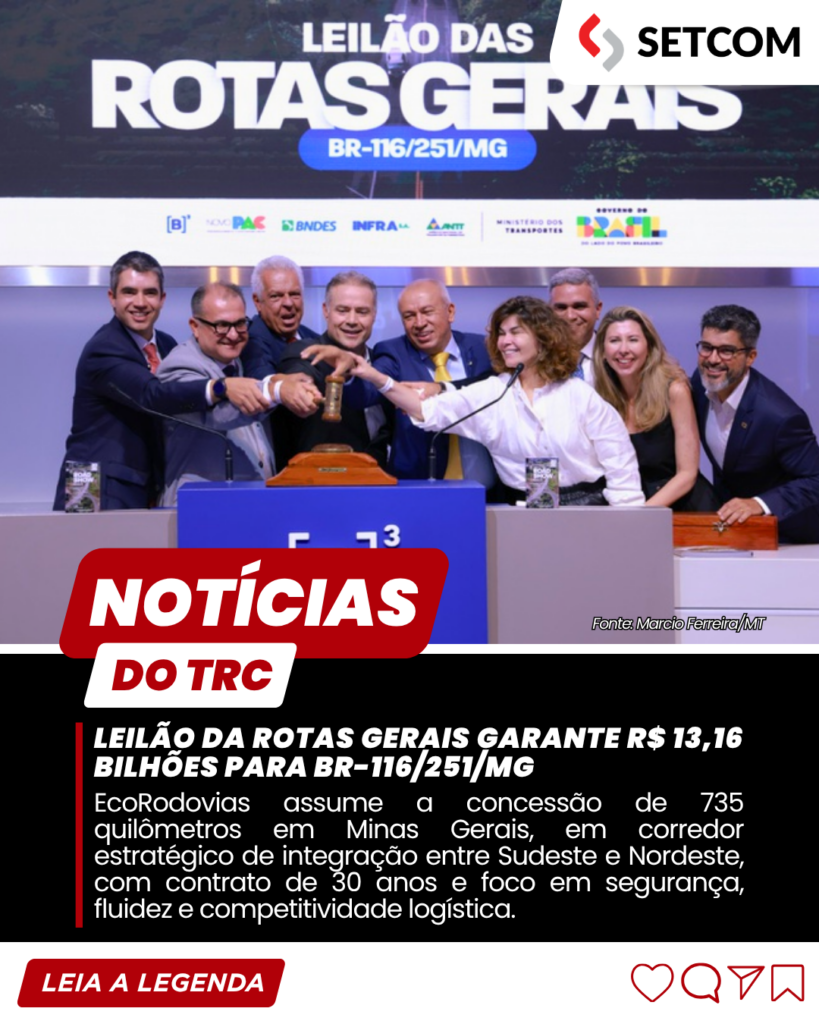 Para o transporte rodoviário de cargas, a concessão da Rotas Gerais tende a produzir efeitos relevantes em eficiência operacional e competitividade, especialmente em rotas que dependem da ligação entre Minas Gerais, Bahia e os grandes centros econômicos do Sudeste.
