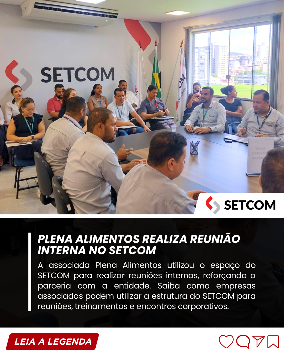 A Plena Alimentos, empresa associada ao SETCOM, realizou mais uma vez suas reuniões internas utilizando o espaço da entidade, reforçando a parceria e o compromisso com a capacitação, alinhamento de equipes e organização de processos.