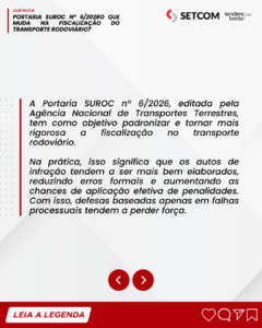 A Portaria SUROC nº 6/2026, editada pela Agência Nacional de Transportes Terrestres (ANTT), representa um avanço na padronização dos procedimentos de fiscalização no transporte rodoviário, com tendência de maior rigor na elaboração dos autos de infração e na aplicação de penalidades.
