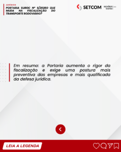 Segundo análise do setor jurídico do SETCOM, o efeito prático da medida é o fortalecimento da fiscalização sob o ponto de vista formal e operacional. Com autos de infração mais estruturados e com menos inconsistências processuais, a tendência é de redução de falhas formais que, em muitos casos, serviam de fundamento para a contestação das penalidades.