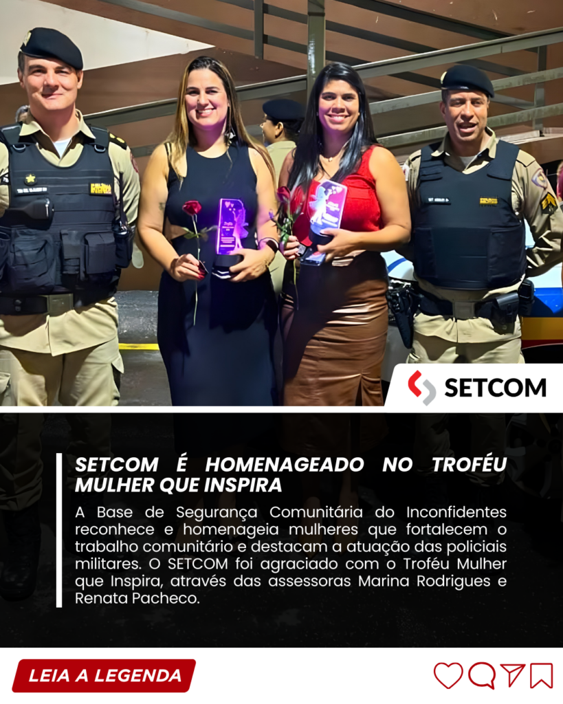 O SETCOM teve a honra de participar do Troféu Mulher que Inspira, uma iniciativa da Polícia Militar de Minas Gerais (PMMG), promovida pela Base de Segurança Comunitária do Bairro Inconfidentes, que reconhece mulheres que contribuem de forma positiva para o fortalecimento da comunidade.