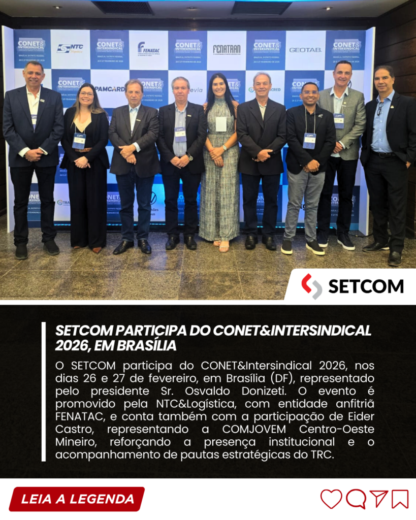 O SETCOM participa da primeira edição do CONET&Intersindical 2026, realizada nos dias 26 e 27 de fevereiro, no Royal Tulip Brasília Alvorada, em Brasília (DF). O sindicato está representado pelo presidente Sr. Osvaldo Donizeti, reforçando o compromisso institucional com a representatividade do Transporte Rodoviário de Cargas (TRC) e o acompanhamento de agendas estratégicas para o setor.