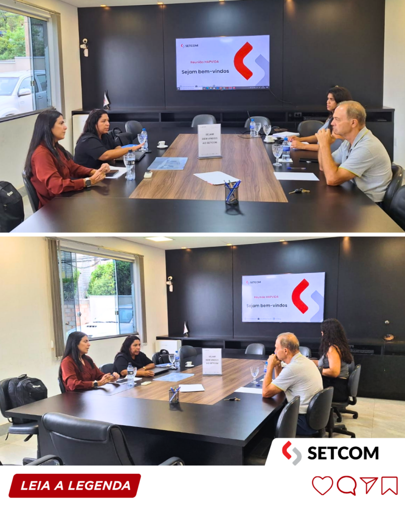 Participaram da reunião as representantes da Hapvida, o Sr. Osvaldo Donizeti, presidente do SETCOM, e as assessoras do sindicato Renata Pacheco e Marina Rodrigues.