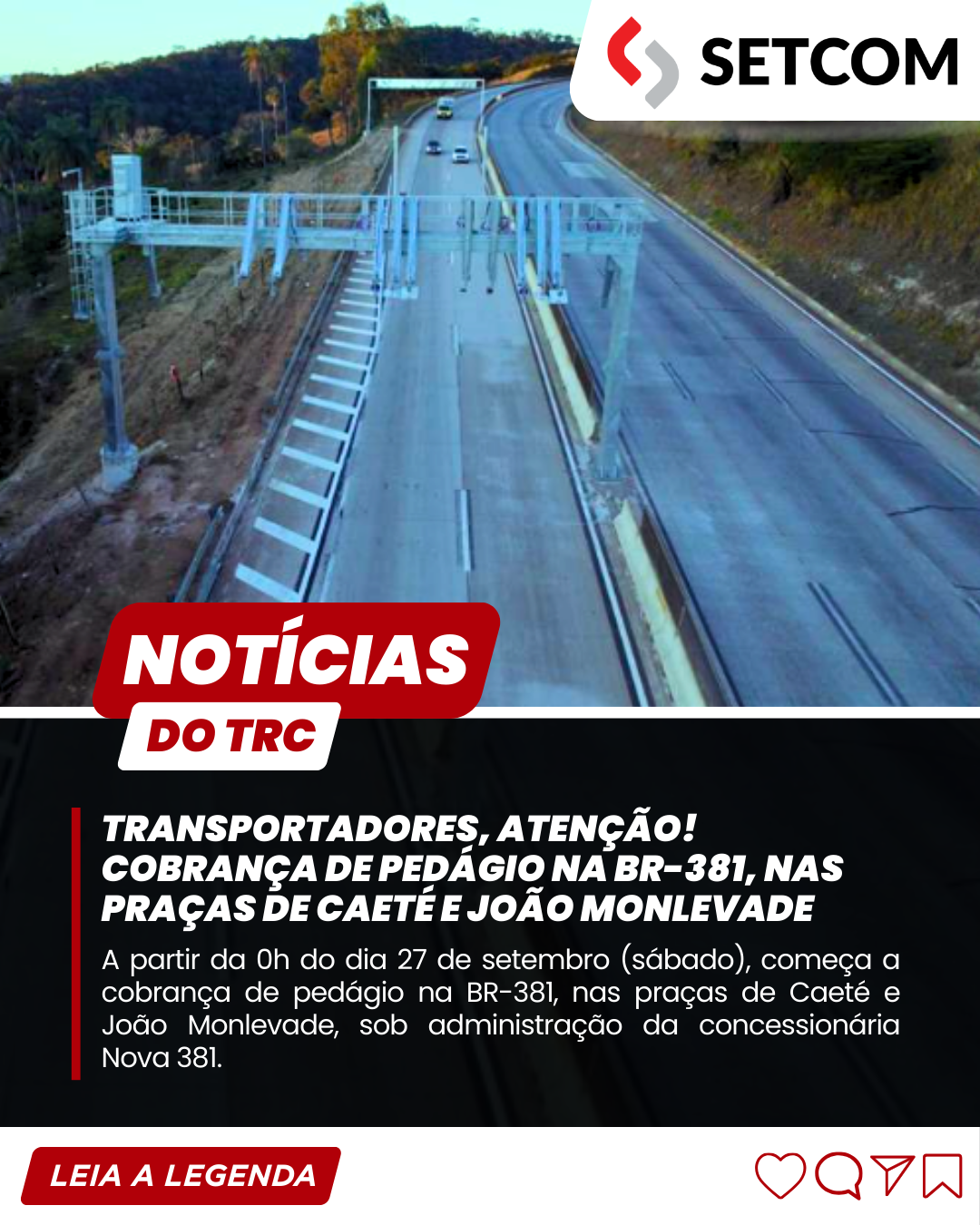 #Pedágio #BR381 #SETCOM #TransporteRodoviário #ANTT